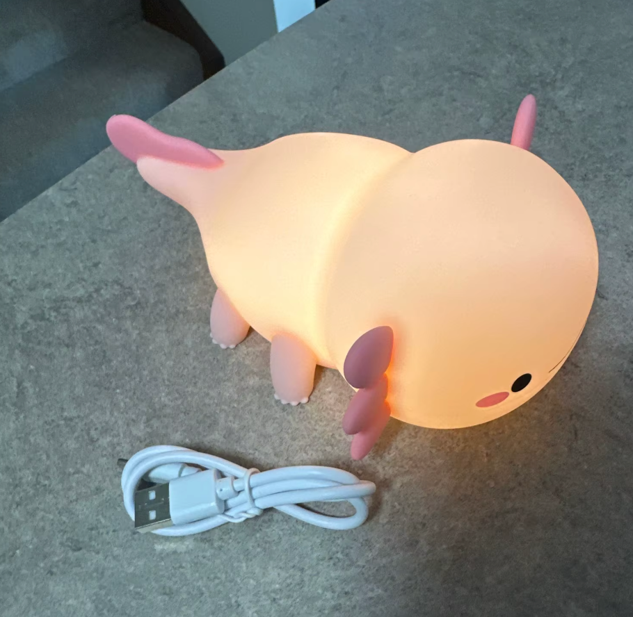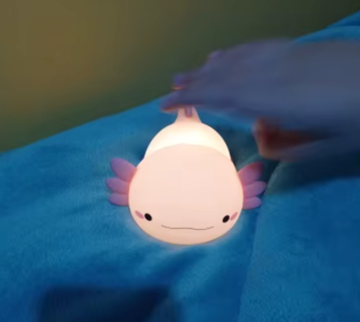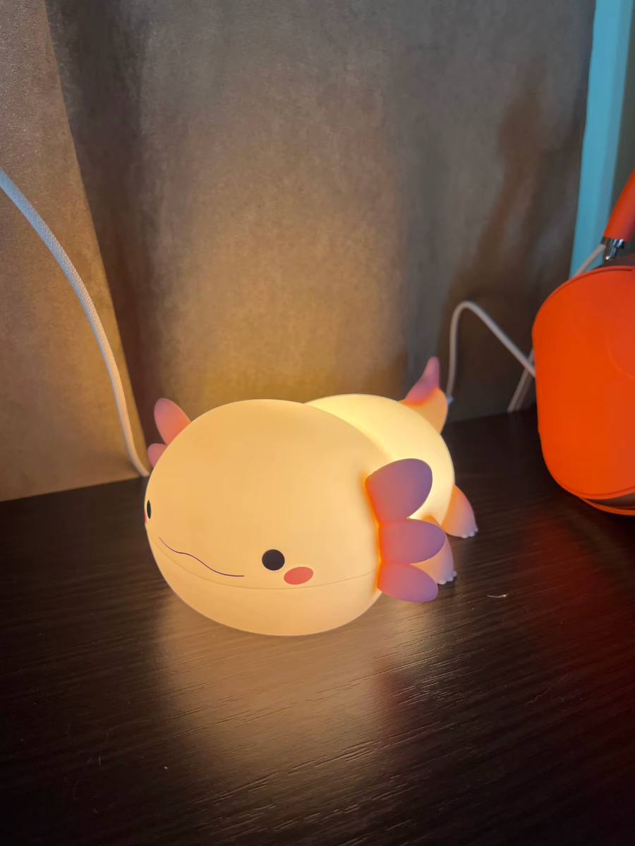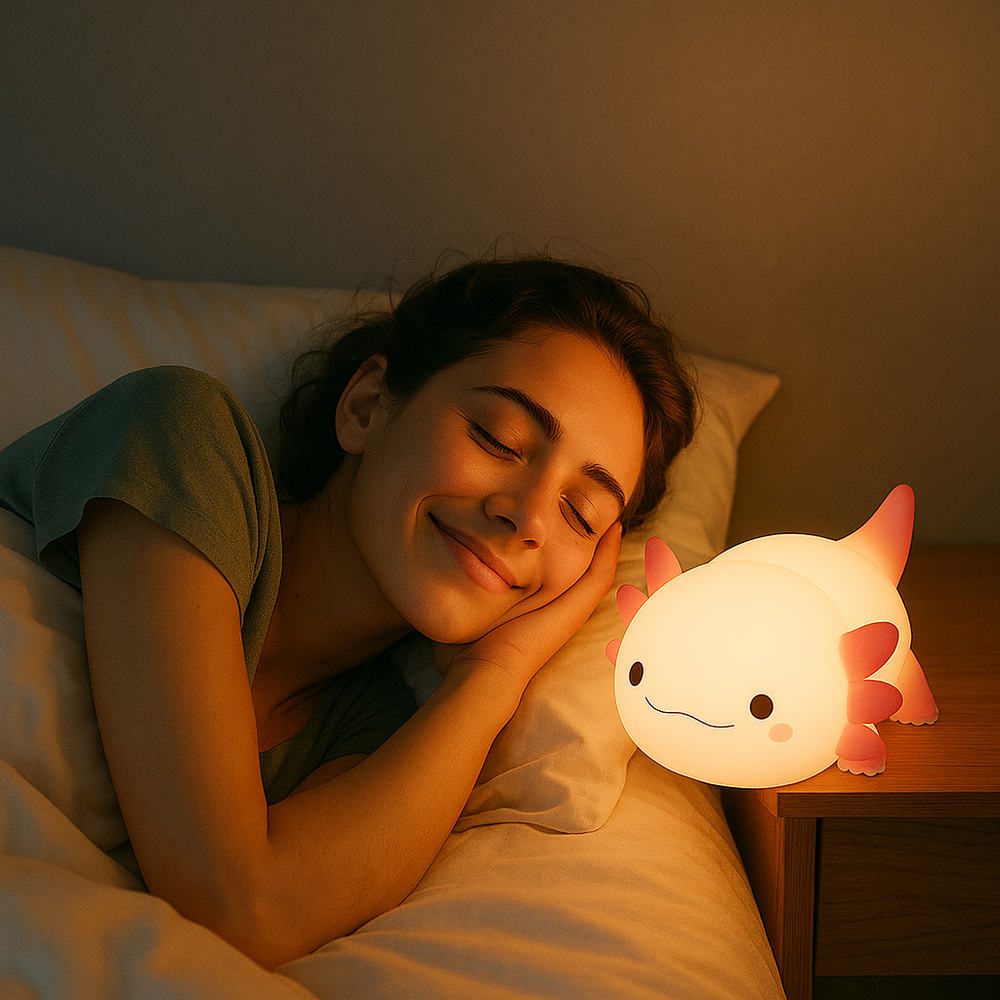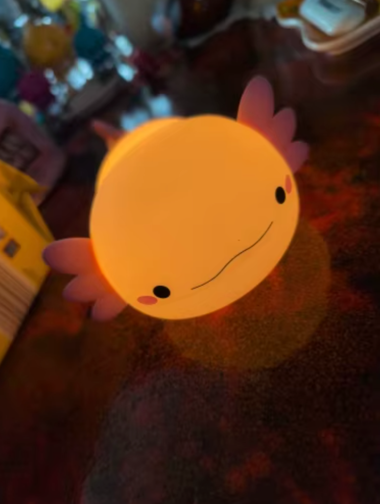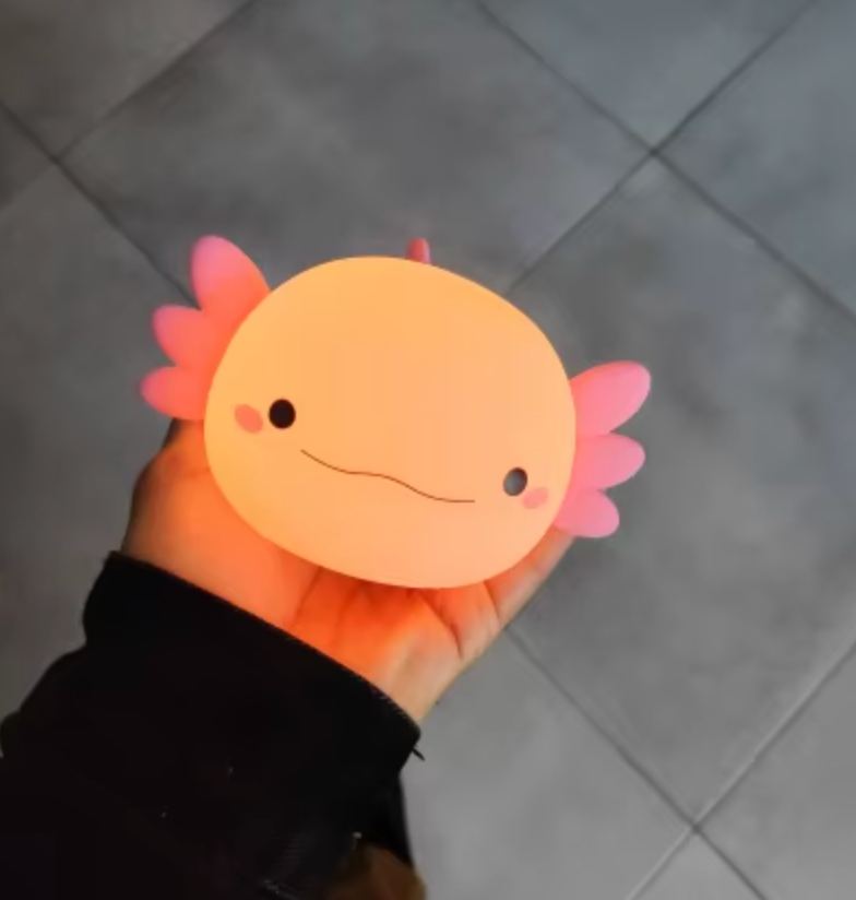 La lámpara Axolotl llena tus noches de calma y ternura 🌙. Su luz cálida te ayuda a dormir mejor y es el regalo perfecto para sorprender con un detalle único y adorable.